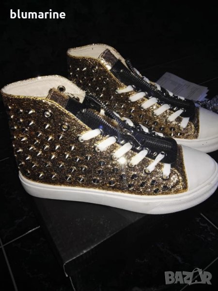 Златни кецове с шипове, внос от Англия . Обувани са един път. Дължина на