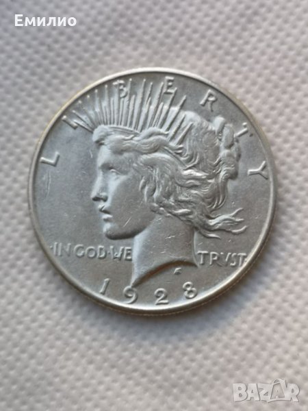 Един Долар PEACE от 1928-S Сан Франциско Минт. Монетата е 100% Истинска и много трудна за намиране.