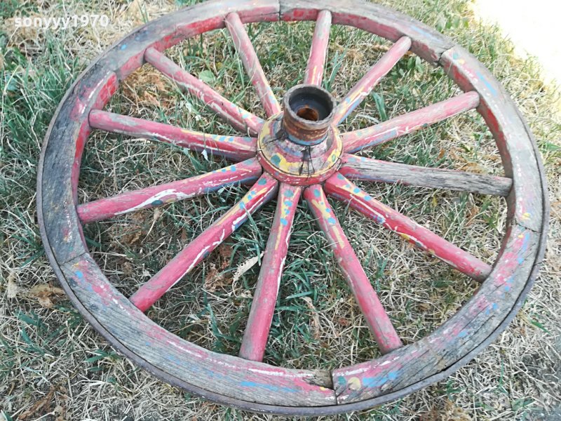 голямо ретро колело от каруца-75см-дърво/метал