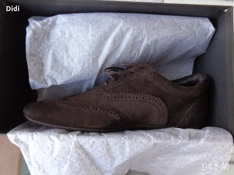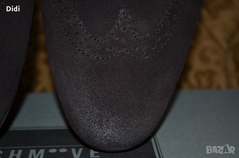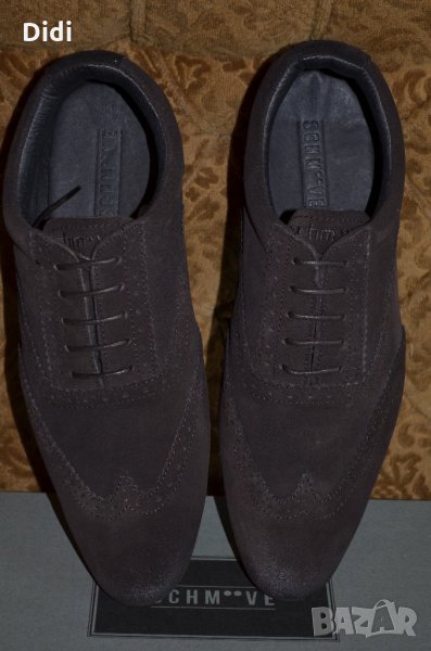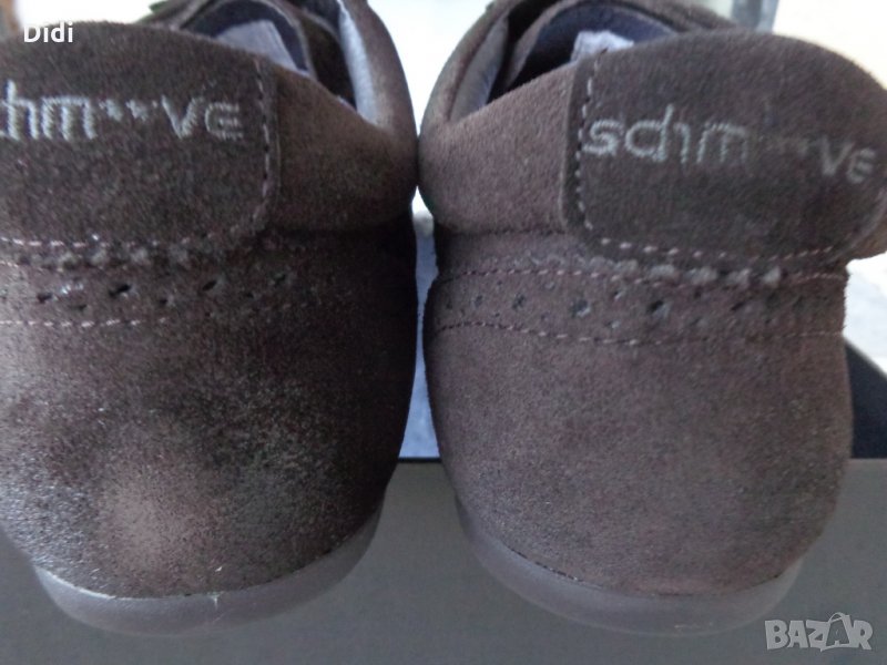 Обувките са чисто нови и в оригиналната си кутия. На фирмата Schmoove са, а модела е Jamaica Corso Easych. Изработени са от тъмнокафяв естествен велур, ниско профилна подметка изработена от каучук и подплата от естествена кожа от вътрешната страна. Пристягане посредством връзки. Номерът е 43 или 27,5 см. дължина на стелката.