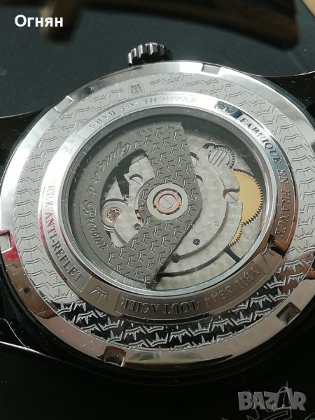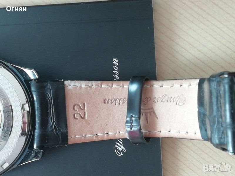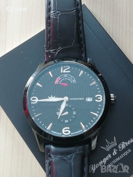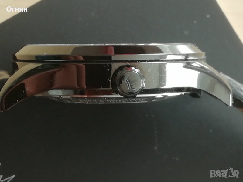 Корпус от неръждаема стомана с устойчово PVD покритие, Циферблат в Черно с бели стрелки, индекси и цифри, каишка от естествена смърт крокодил стил,