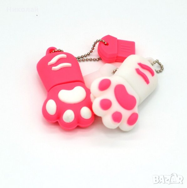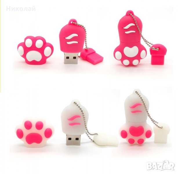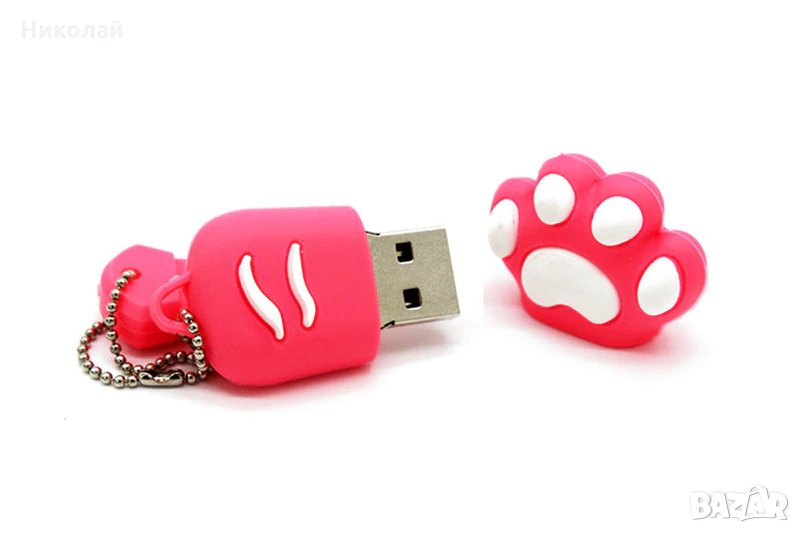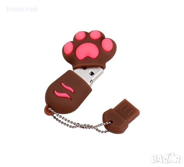 флашка 32 гб. Във формата на котешка лапа / краче . Предлага се в три цвята : бял , розов и кафяв. Подходяща е за подарък за хора , които обичат или притежават домашни любимци котки . Допълнителният аксесоар , който е закрепен към металното синджирче е щифт , който можете да сложите в капачето на флашката за да не го изгубите , когато работите с нея.