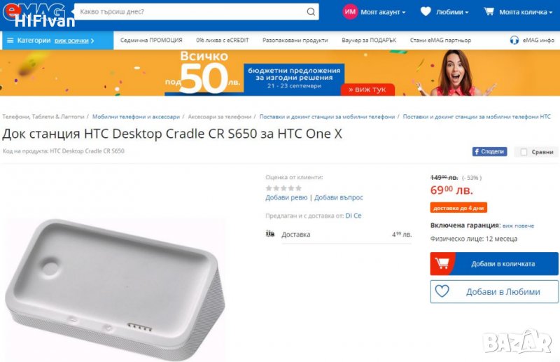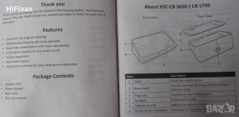• Модел: HTC Desktop Cradle Speaker Doc CR S650