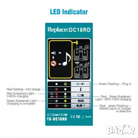 -100% Съвместим с оригинални безжични електро инструменти и зарядни