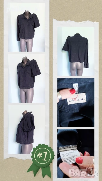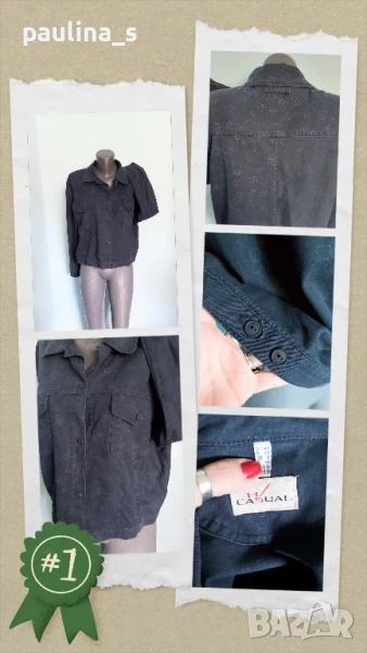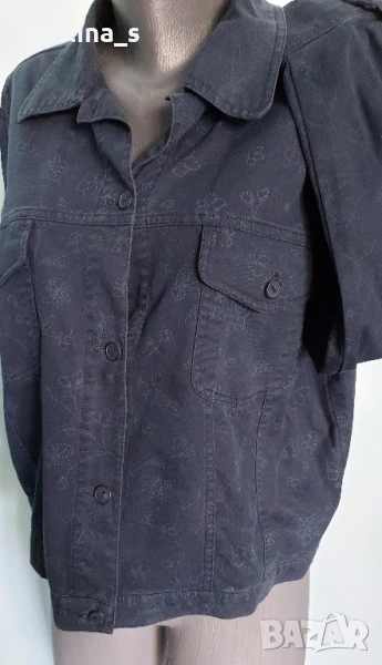 1️⃣ . Колаж / XL / 3XL "Casual" - Цената е крайна 29,99лв / 15 евро. Уникално, брандово, дънково яке във флорален принт, кроп модел. Платът е еластичен, умерено плътен Деним, с лек избелващ ефект на тегелите. Много красива дрешка, цветът е тъмно син със светли цветя. Моделът е с два предни джоба с капаци. Отзад се регулира с копчета. Много весела дреха. Без дефекти и етикет.
