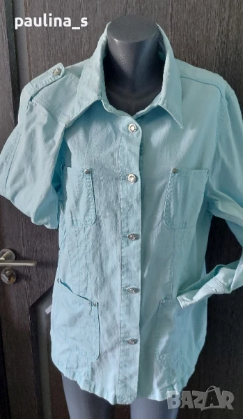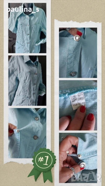 3️⃣. Колаж / 2XL / 4XL - "Marks & Spencer" - Светло синьо дънково яке тип сако. Цената е крайна 39,99лв / 20 евро. Марково еластично дънково сако с камъни на копчетата и кабсите. Платът е еластичен Деним, покрива няколко номера, плътен и релефен, с избелващ ефект. Цвят светъл тюркоаз, дрехата е без дефекти. Много стилна и качествена.