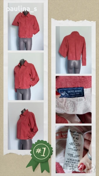2️⃣. Колаж / XL / 3XL - Червено дънково яке "Saint James" France. Цената е крайна 29,99лв / 15 евро. Стандартен леко втален модел, закопчава се с цип, джобовете са в страничните тегели. Платът е еластичен и релефен - дискретни релефни карета. Класика и стил, гарантирани от дизайнерския бранд. Без дефекти, като ново!