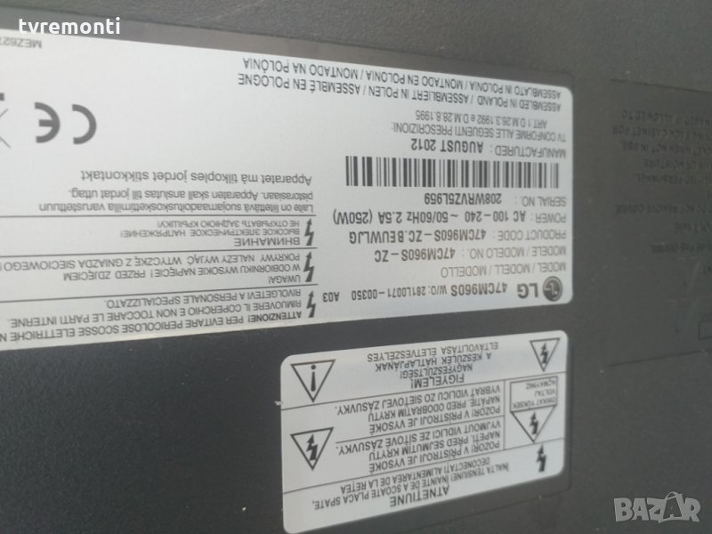 MAIN AV EAX64317404(1.0) EBT62082613 Борда е гарантирано работещ Демонтиран от телевизор със счупен дисплей модел LG 47CM960S