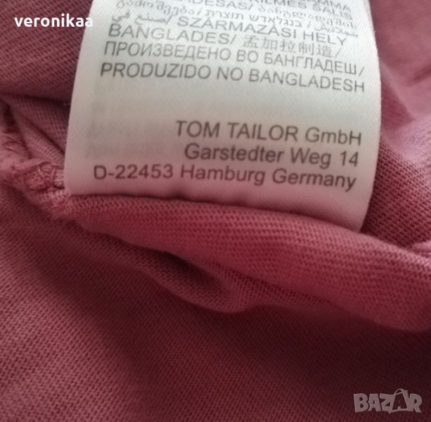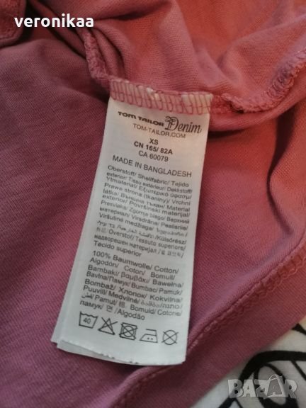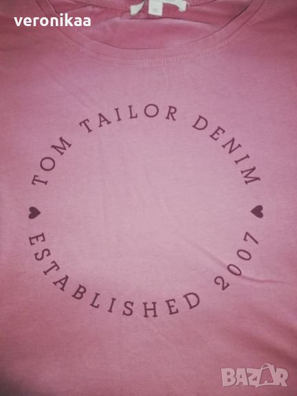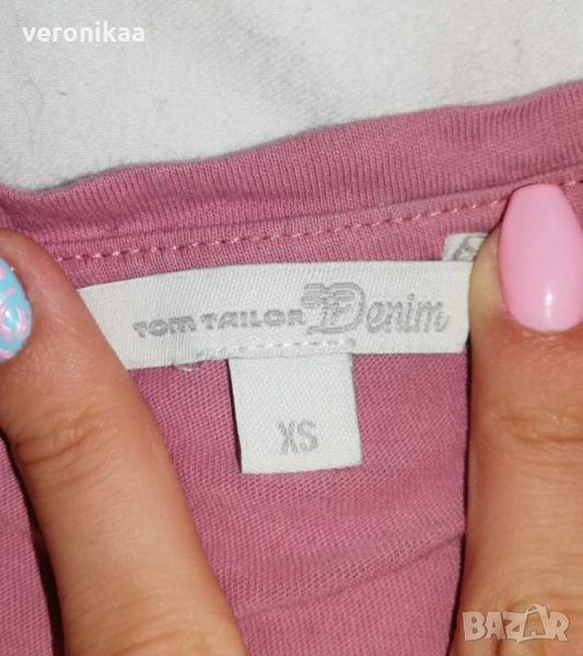 Оригинална тениска Tom Tailor, цвят пепел от рози, носена точно два пъти, като нова е, без никакви забележки, по етикет е XS, но отговаря по-скоро на S