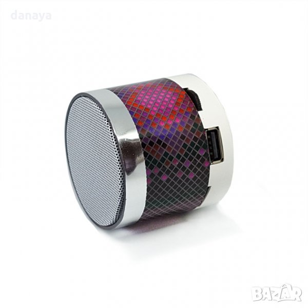 Светеща мини блутут колонка за телефон или лаптоп. Колонката е в джобен размер, лесно преносима. Има слот за Usb flash карта и слот за TF карта за слушане на музика, когато нямате достъп до интернет. Свързва се чрез блутут с телефона. Един бутон за смяна на песен или смяна на режим. Регулирането на звука се осъществява от телефона.