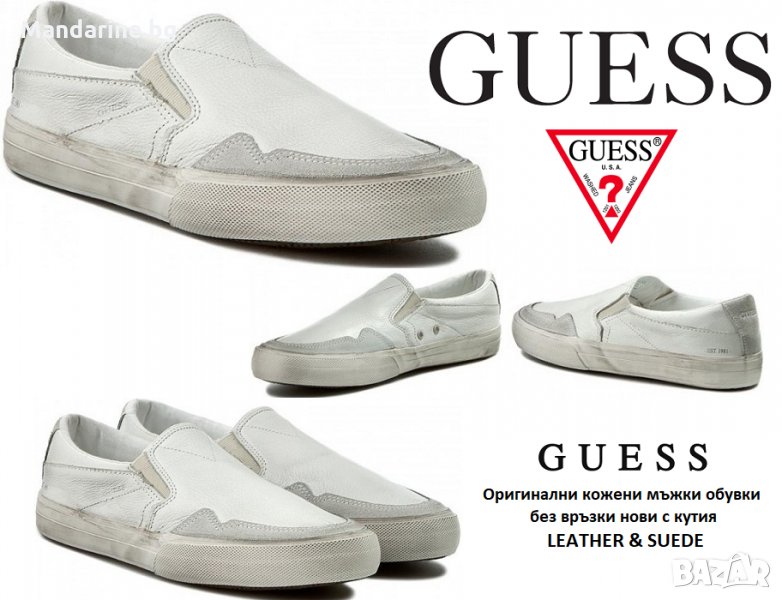 ПРОМО 🍊 GUESS 43 номер 🍊 Оригинални кожени обувки без връзки LEATHER & SUEDE нови с кутия → Обява 26592003