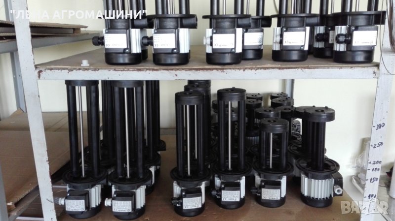 Електрически помпи за смазочно-охлаждаща течност за машини. Монофазни и трифазни, с дълбочина на потапяне от 85 до 300 мм, дебит 35 и 70 л/мин.