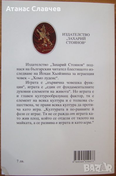 "Homo Ludens" Йохан Хьойзинха, снимка 1 - Специализирана литература - 26597088 "Homo Ludens" Йохан Хьойзинха, снимка 2 - Специализирана литература - 26597088 "Homo Ludens" Йохан Хьойзинха, снимка 3 - Специализирана литература - 26597088 1/3
