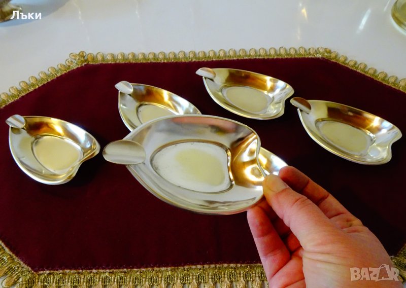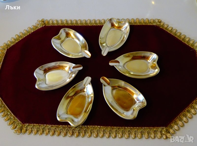 Старинен немски месингов пепелник за пура и цигара,посребрен с висока проба