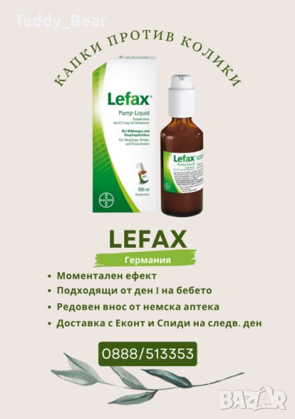 Етикети: бебешки, капки, колики, Симетикон, активна съставка, ефективни, бебе, Лефакс, голяма опаковка, немски, прием, съхранение, мнения, Германия, оригинални, внос, Стара Загора, Казанлък, Трявна, Севлиево, Троян, Ловеч, Луковит, Свищов, Перник, Ботевград, Враца, Монтана, Варна, Пловдив, Русе, Бургас, Лефакс олх, лефакс olx, капки за колики бг мама, симетикон, simeticone, Инфакол, капки лефакс листовка, странични ефекти от лефакс, лефакс в аптеките, кога започва да действа лефакс, от къде купувате лефакс, капки за колики лефакс мнения, немски лефакс, капки лефакс как се дават.