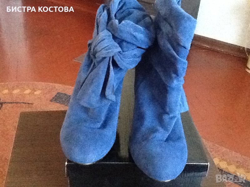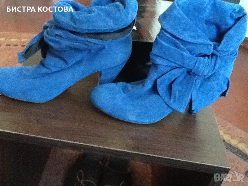 Велурени тъмно сини боти 39 номер → Обява 26605957