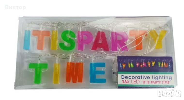 Лампики за парти/ светеща ЛЕД декоративна верига I'ts Party Time. → Обява 26606978
