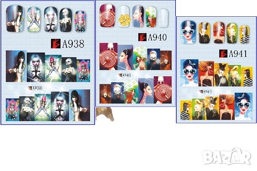 12 в 1 сет Секси Мацки татос водни стикери маникюр нокти декорация → Обява 26607852