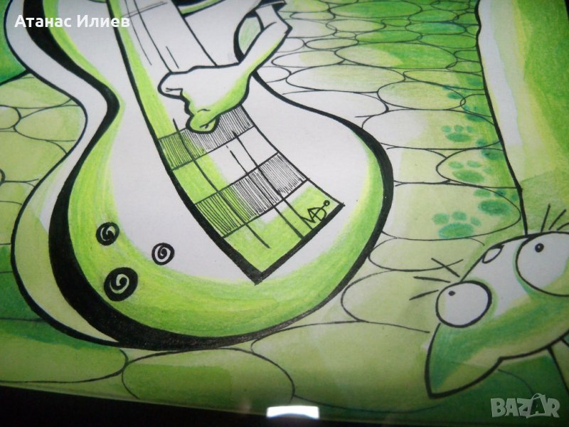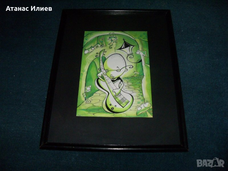 Интересна картина нарисувана в стил комикс - илюстрация. Картината е подписана, известно е първото име на художничката - Мадлен. Вероятно художничката е илюстратор. Размери с рамката 37х47 см.