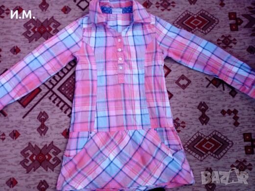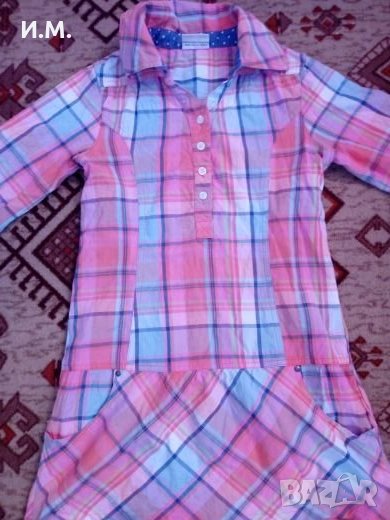 В отлично състояние. Ризка-рокля, която е и туника, зависи кой както му харесва. Много удобна. Дължина 69см, ръкав 52см, ширина мишници макс 42см. Може да се носи и на къс ръкав. Клинът е леко ватиран, като нов. Ширина талия макс 40см. Заедно 13лв, поотделно рокля 9лв, клин 8лв.