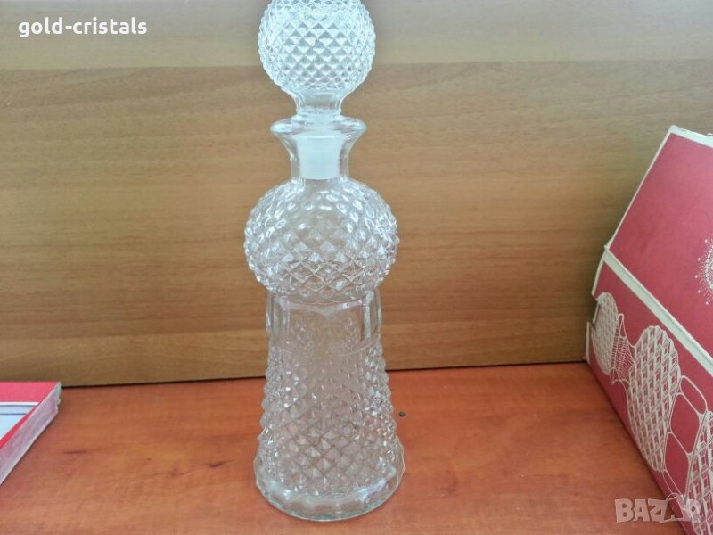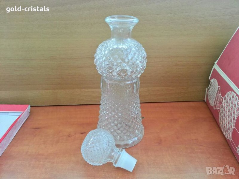 гарафа българска завод китка неизползвана в кутия -30лв подходяща за подарък за ценители чашки същия модел за ракия 6бр чашки -15лв 6бр средни 20лв чаши от по големите -25лв същата гарафа без кутия -15лв стъклена кристална бутилка шише ретро стара арт декор винтидж колекция за ракия вино вода коня ликьор стъклена тапа стари антикварни предмети обзавеждане за дома и семейството подходящи за подарък за ценители и колекционери