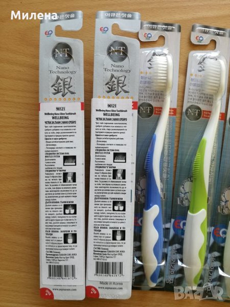 Произведени по нанотехнология с имплантирани във влакната нано злато, нано сребро, нано нефрит и с уникална U образна форма на влакната за цялостно почистване на зъбите.