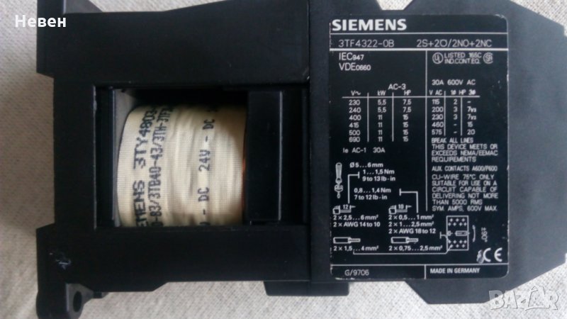 Контактор SIEMENS 3TF4322-OB → Обява 26621954