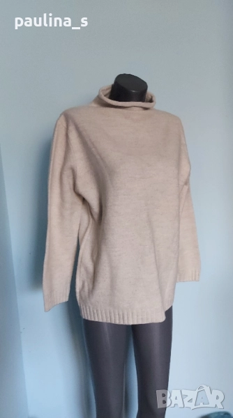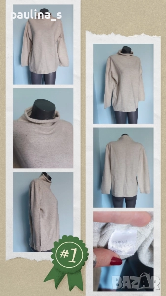 3️⃣. Колаж / L / 2XL / Цената е крайна, без пазарлъци 49,99лв / 25 евро. Дамски топъл светлосив пуловер с поло яка, без да е много тясна горе, не боцка приятен е за носене. Голям размер. Преждата е 47% вълна, полиамид и найлон. Без дефекти, като нова. Ергономична и стилна дреха, стопанисвана с любов.