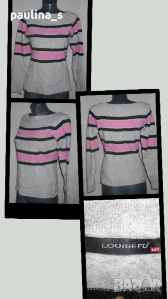 2️⃣ Колаж / M / 2XL - "LOUISE FD". Цената е крайна, без пазарлъци 49,99лв / 25 евро. Атрактивен пуловер с открити рамене с розово и черно. Може да се носи и като дълбоко деколте, цветовата гама и изключително добре подбрана, дрехата е много секси. Преждата е 70% агнешка вълна и еластан. Ръкавите започват от деколтето. Поради голямата еластичност, може да се носи от няколко размера. Без дефекти, една бройка е.