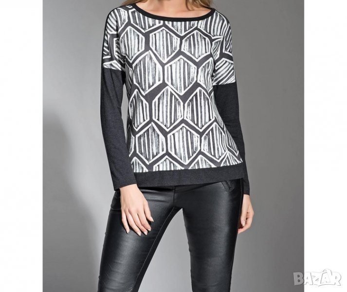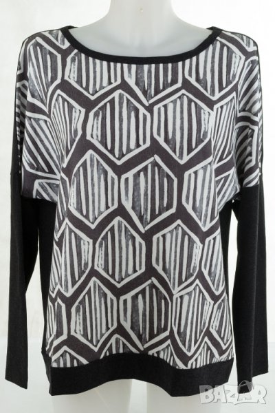 Черна дамска блуза с принт в бяло и сиво марка La Aurora XL/2XL