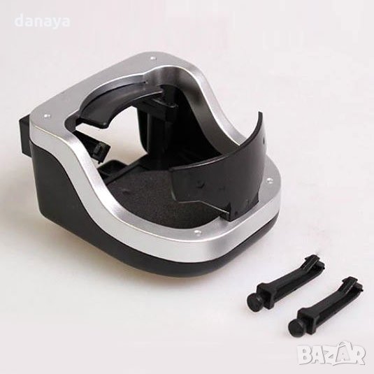 Универсална поставка за чаша за автомобил. Универсална стойка за чаша кафе, чай, кен кола, закачаща се за решетката на парното. Стойката притежава пружинна пластина, която уплътнява чашата и не и позволява да мърда. 2 броя кукички държат здраво поставката за напитки към таблото. Лесно поставяне. Дъното на поставката е покрито с мек материал, който обира вибрациите и намалява опасността от разливането на напитката.