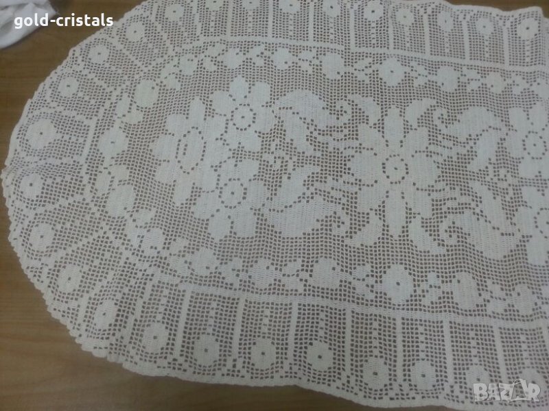 Стара покривка за маса плетена дантела на една кука ръчна изработка цвят екрю материя памук елипса 80/40см неизползвана добре съхранена без забележки ретро старинна антикварна арт декор винтидж колекция стара стари антикварни предмети обзавеждане за дома и семейството подходяща за подарък за ценители и колекционери