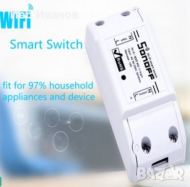 интернет ключ,който може да включва различни електроуреди до 2,2 kW. Sonoff се свързва по WiFi с рутер , което позволява дистанционно