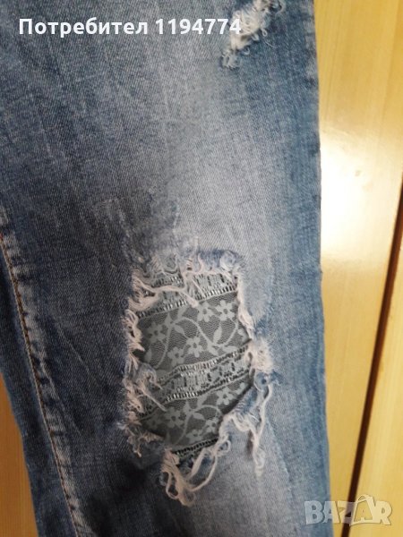 Дънки с дантела. Еластична материя. Дънките са носени 2-3 пъти и са в отлично състояние. Модела стои много добре и оформя тялото. Купувани са от бутиков магазин на тройна цена. Дантелата е слагана допълнително и може да се премахне.