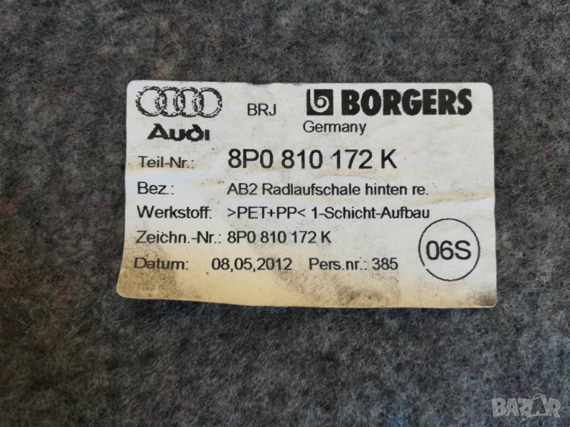 Заден десен мокетен подкалник Аudi A3 8V (2012-2016г.) 8P0810172K / 8P0 810 172 K → Обява 26658451