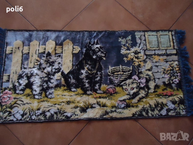 ковьор,пано,килимче,покривка,не ползван, от плюш ,много красив с кучета и