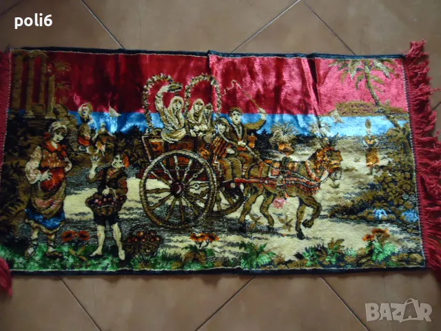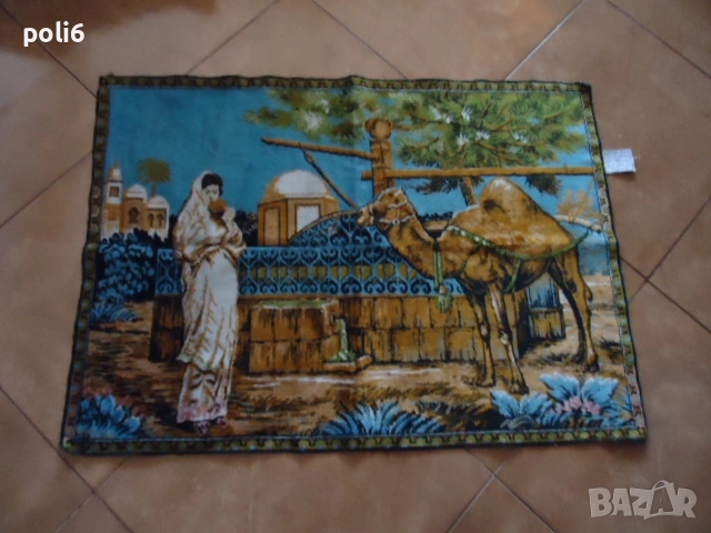 ковьор,пано,килимче,покривка,не ползван, от плюш ,много красив с камила и девойка размер 96/69см цена 20лв//