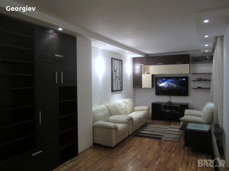 Двустаен апартамент (хол с всекидневна, кухненски бокс, стая, антре, баня с тоалетна и 2 балкона - 6, 1 м2). Настилките са естествен дъбов паркет и теракотa, стените-на бял латекс. Алуминиева дограма. Санитарно помещение на фаянс и теракота. Жилището е напълно обзаведено. Кухненски бокс с вградени луксозни електроуреди. Пералня, сушилня, прахосмукачка и ютия с дъска. Дневна - мека мебел(разтегателен диван/малка спалня), трапезарна маса със столове, спалня - комплект. Локално отопление на климатик и ел. радиатор. Без парко място/гараж. Магазини, фитнеси и козметични салони в близост. Наем за не по-малко от 1 година. Удължаване на наемния период за не по-малко от 1г.