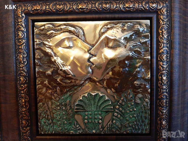 Бронзова пластика, ръчна изработка, с наименование "Целувка завинаги" ,цикъл "Сътворението".Размерите са 25х25см.
