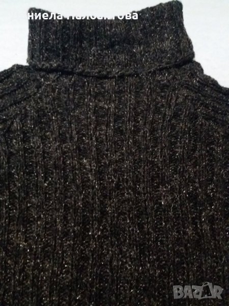 Ръчно изплетено поло, за макси дами, в черно със сребрист отблясък. Обличано е броени пъти и е в перфектно състояние. Подходящо за студените зимни дни.