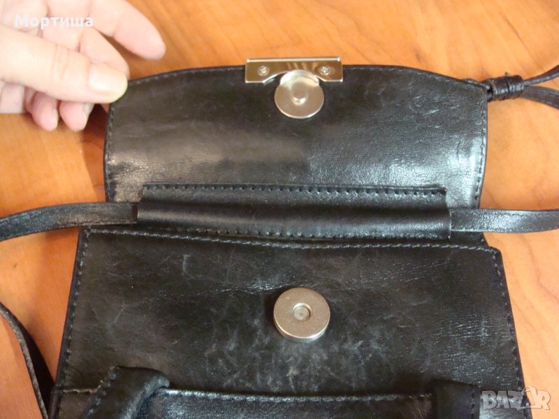 100% Оригинална естествена черна кожа Кокетна чантичка с размер 20 на 14 см с къси и дълга дръжка .За размерите си побира най необходимите неща има джоб за документи ,за телефон за химикали .Отпред е с два скрити джоба без запопчаване .Лек винтидж ефект Без забележки ЦЕНАТА НЕ ПОДЛЕЖИ НА КОМЕНТАР БЕЗ БАРТЕРИ