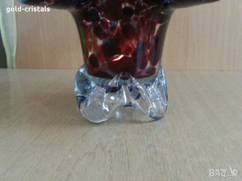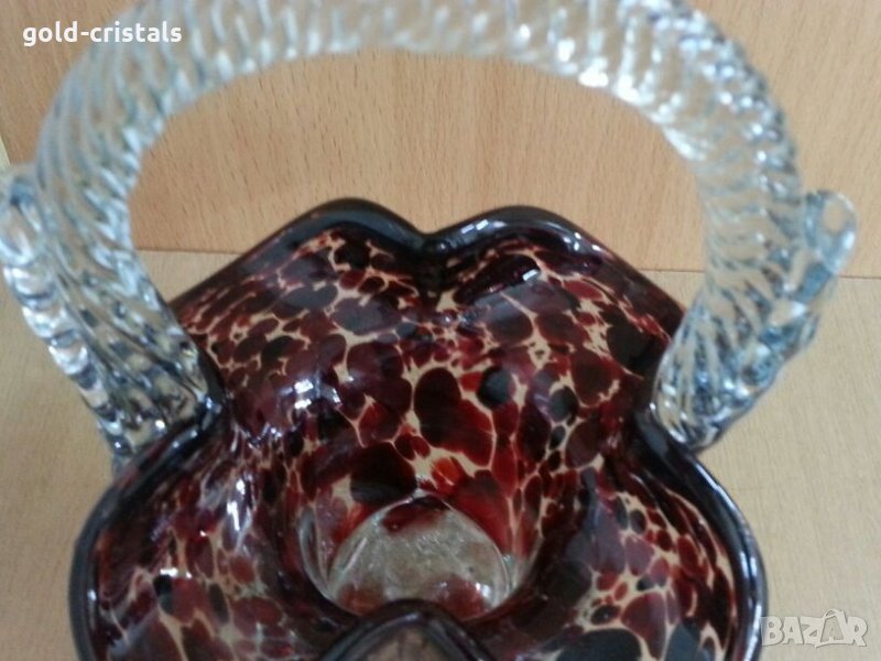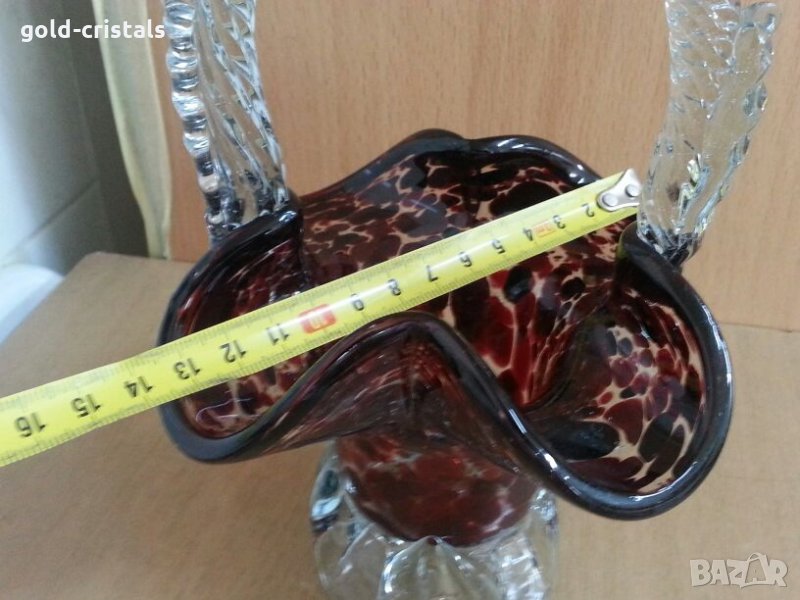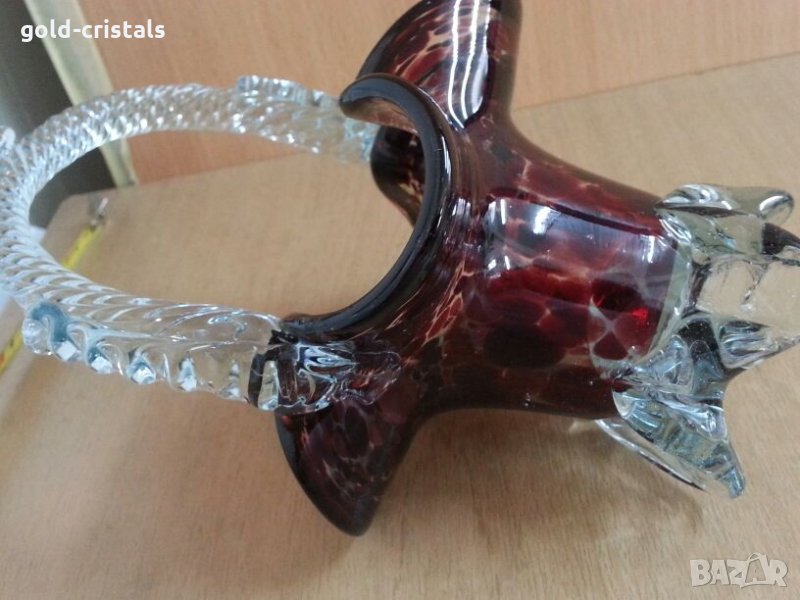 Антикварна кристална купа кошничка фруктиера бонбониера кристално цветно червено стъкло тип мурано ръчна изработка стара старинна ретро арт декор винтидж колекция стари антикварни предмети обзавеждане за дома и семейството подходяща за подарък за ценители и колекционери