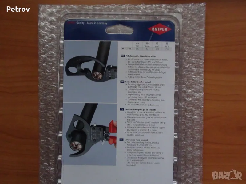 **************** ORIGINAL - KNIPEX 95 31 280 - ПРОФЕСИОНАЛНА КАБЕЛНА НОЖИЦА от KNIPEX - Made in Germany - model 95 31 280 - с капацитет на рязане 52 mm / 380 mm²