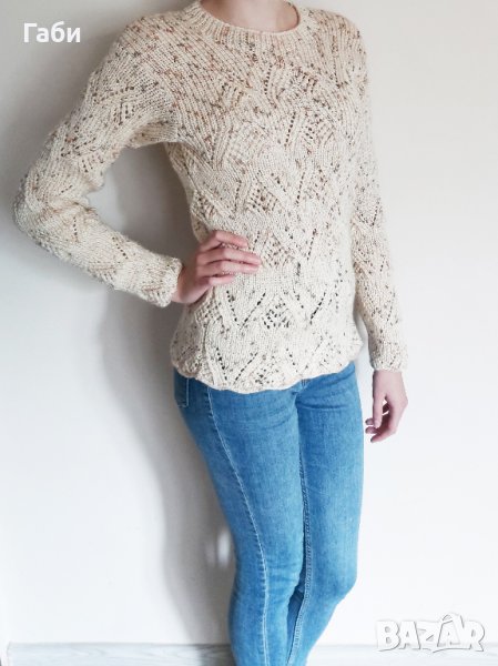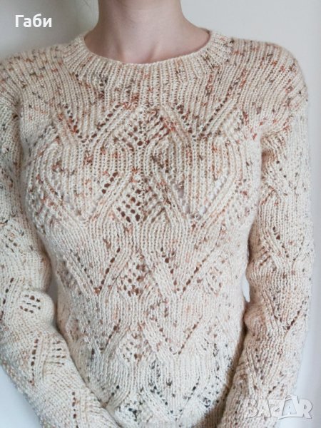 Ръчно плетена блуза, цвят екрю с ажурни мотиви → Обява 26678961