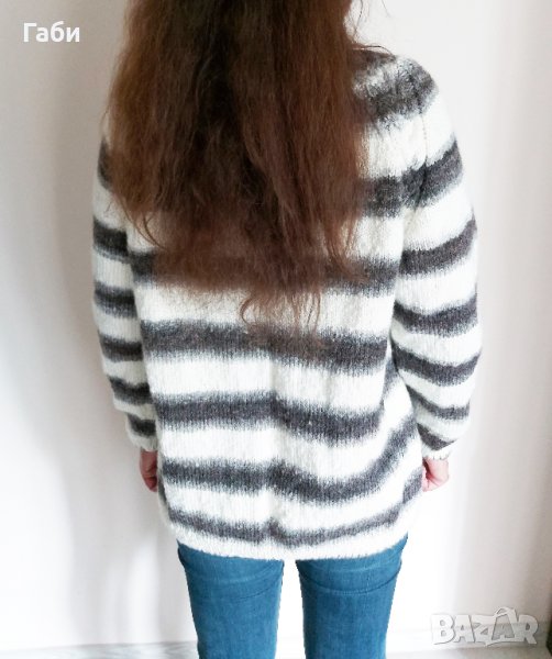 Страхотен ръчно плетен пуловер в  черно, бяло и сиво → Обява 26679239
