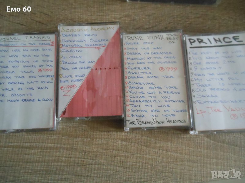 касети на1 запис в перфектно състояние! записвани на 3 глав дек с перфектно качество! заглавията се виждат на снимките! цената е1 бр