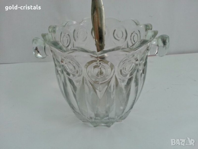 Антикварна стъклена ледарка купа бонбониера -19лв захарница щипка 1бр-15лв ледарка чисто нова в кутия 1бр-39лв стара старинна ретро арт декор винтидж колекция кристално стъкло гравирано неизползвана без забележки стари антикварни предмети обзавеждане за дома и семейството подходящи за подарък за ценители и колекционери