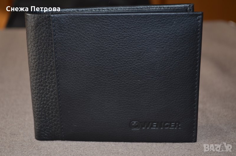 Портфейла е чисто нов и в оригиналната си кутия. Оригинален е на Швейцарската фирма WENGER, а модела е NEXUS W 32-07. Портфейла е Хоризонтален тип и е изработен от черна естествена кожа. Портфейлът разполага с: