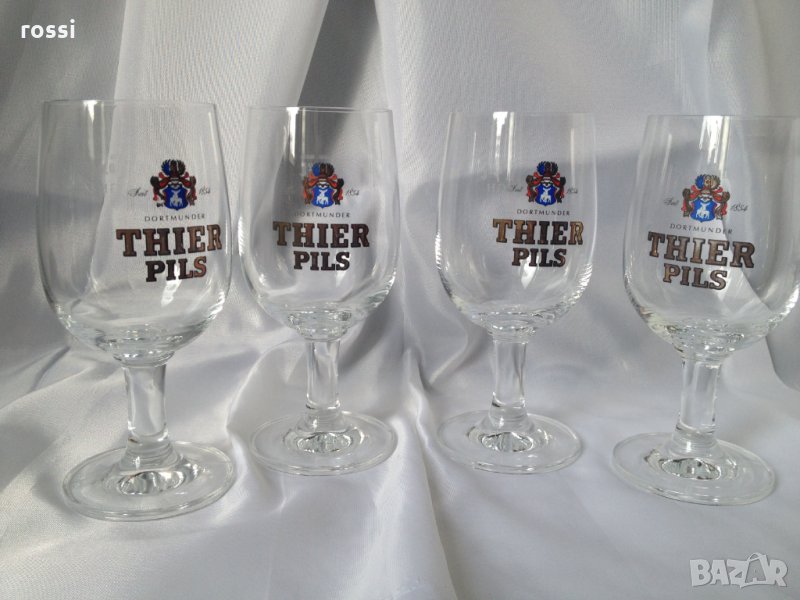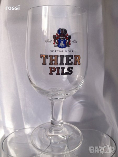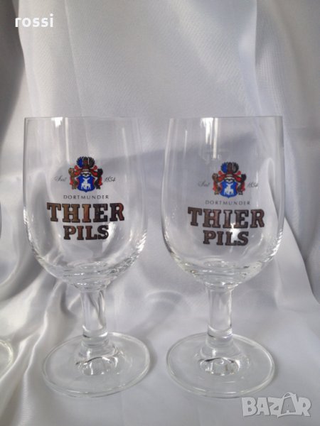 Красиви немски чаши за бира на столче от колекцията на известната марка от Дортмунд "THIER PILS", основана 1854 г.: