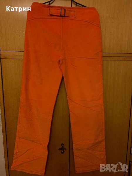 Оранжеви дамски джинси L размер, прави с коланче. Българско производство.
